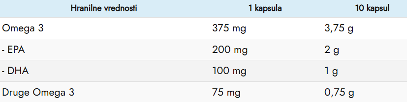 10 mini kapsul na dan - 3 g EPK in DHK imata vlogo pri vzdrževanju normalnega krvnega tlaka (pri vnosu vsaj 3 g EPK in DHK na dan)